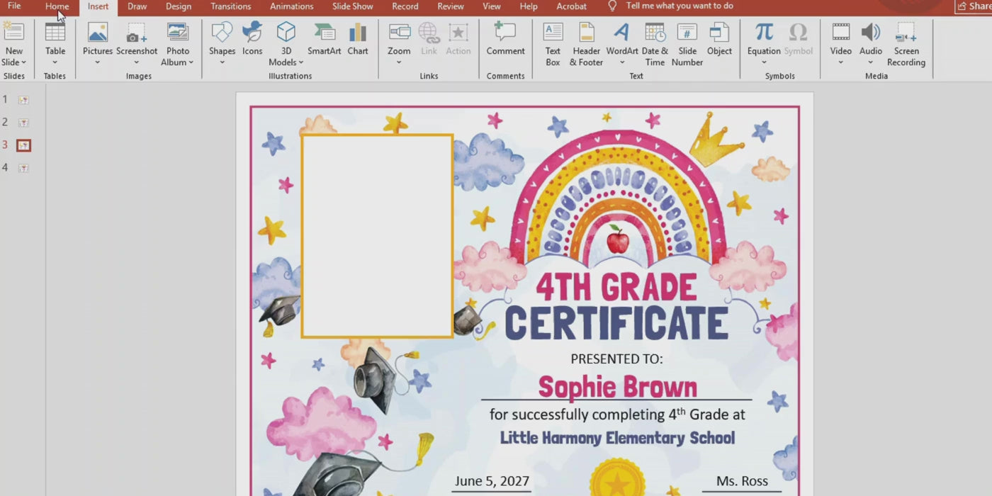 *A detailed step-by-step guide with images and clear instructions on how to easily insert and embed your photo into the frame in PowerPoint is included in the set.