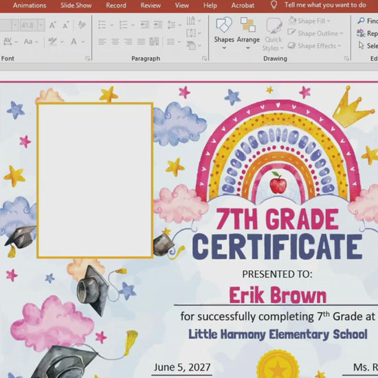 You’ll receive Two Graduation Award Styles (Photo and No-Photo Versions Included), allowing you to create a personalized graduation keepsake for every student. You can also Choose the Award Title You Prefer (Diploma or Certificate) depending on your needs. All templates are fully editable in PDF and PowerPoint (background image is not editable), making customization simple and efficient. The set includes a detailed, step-by-step guide with images and clear instructions to help you easily insert and perfectly embed your photo into the frame using PowerPoint.