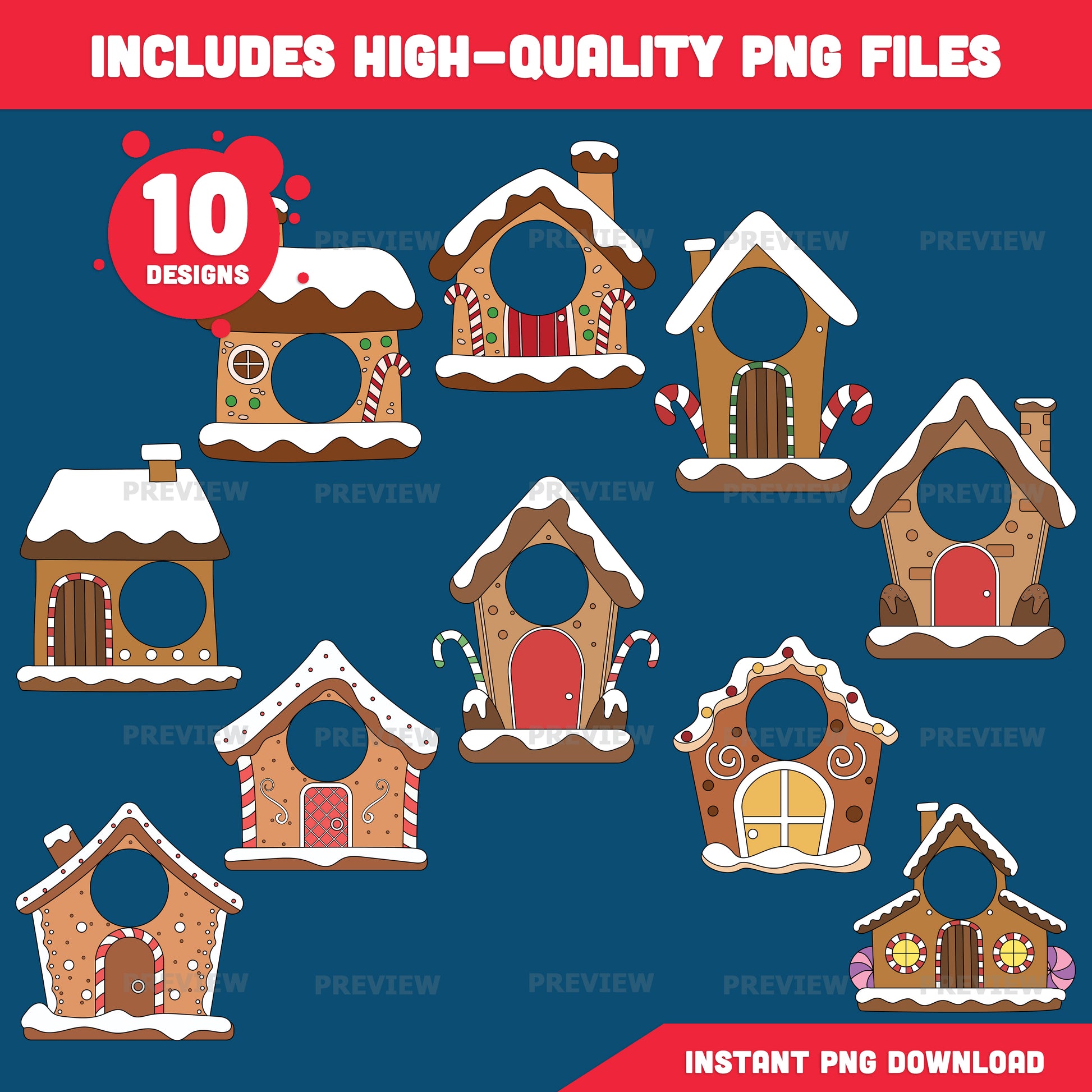 Add Your Face Gingerbread House, Winter Add-Your-Face Templates, Holiday Body Craft with Coloring Version Included, High-res PDF + PNG Files, 10 Printable Designs