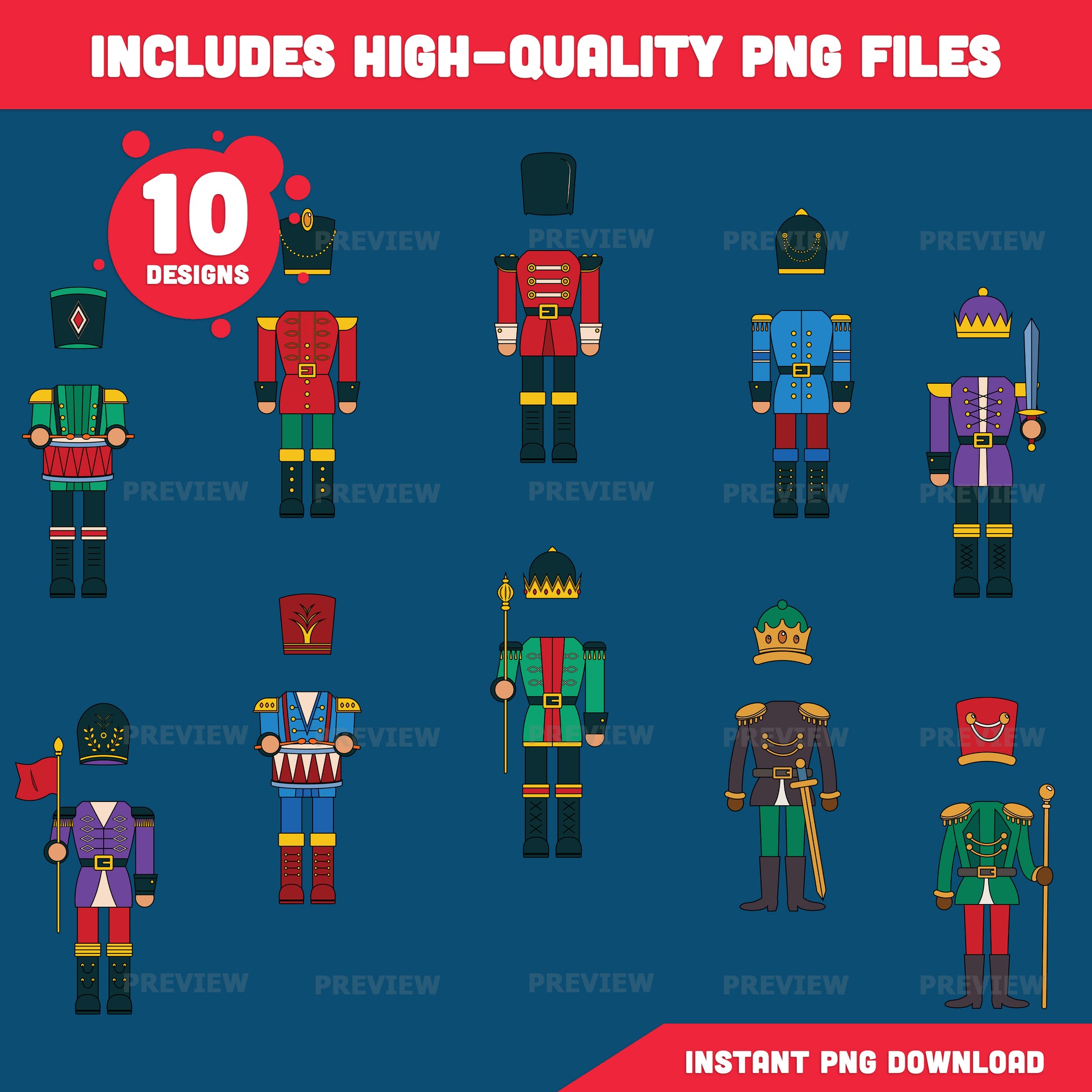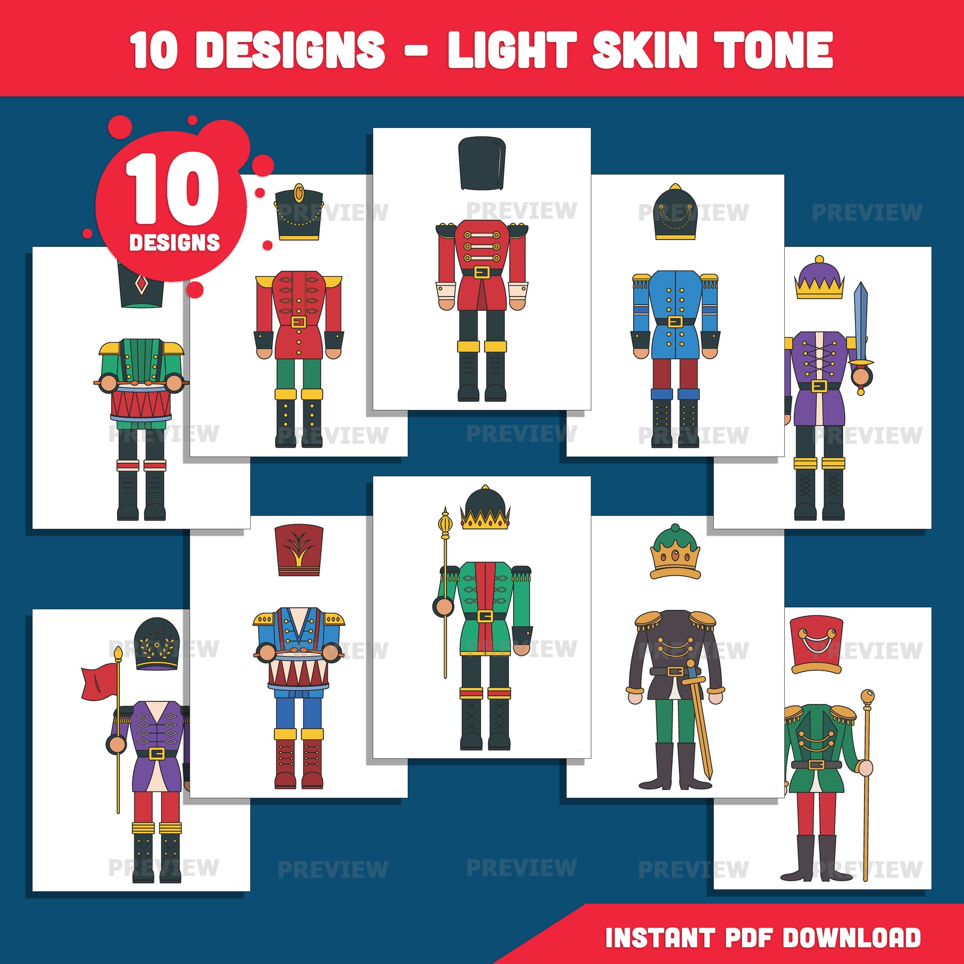 Christmas Nutcracker Body Templates – Add Your Face Winter Craft for Classroom & Home, 10 Designs Light + Dark Skin, PDF + PNG