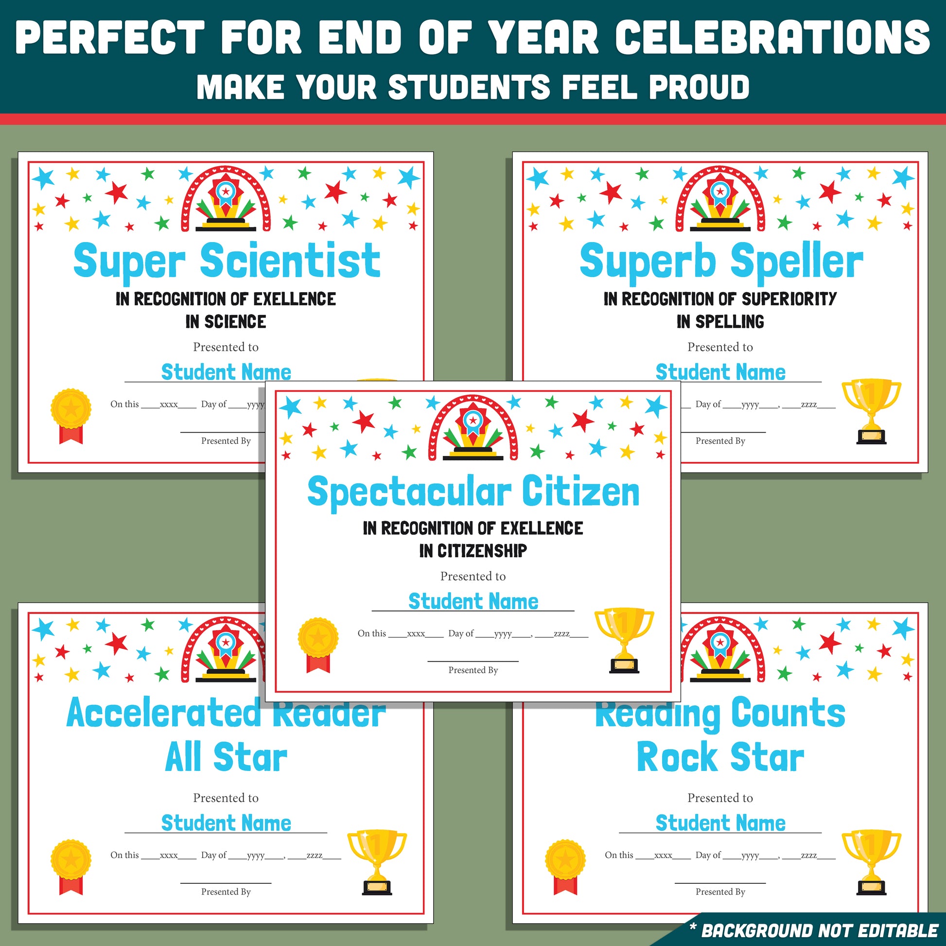 - There are 26 colorful certificates in this set. Enough so that each student can be recognized with a unique award.