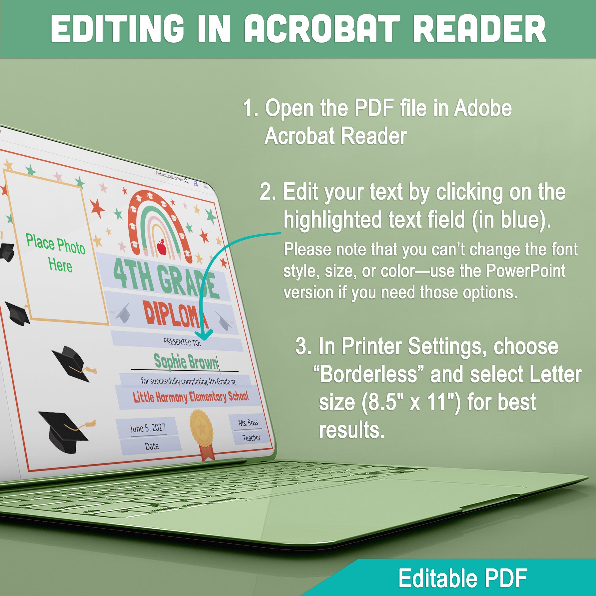 This resource includes Two Graduation Award Styles, Photo and No-Photo Versions Included, so you can decide what works best for your classroom setup. You can also Choose the Award Title You Prefer, Diploma or Certificate, depending on your needs. All templates are fully editable in PDF and PowerPoint, except for the background image which is not editable. The set includes a detailed, step-by-step guide with images and clear instructions to help you easily insert and perfectly embed your photo into the frame using PowerPoint.