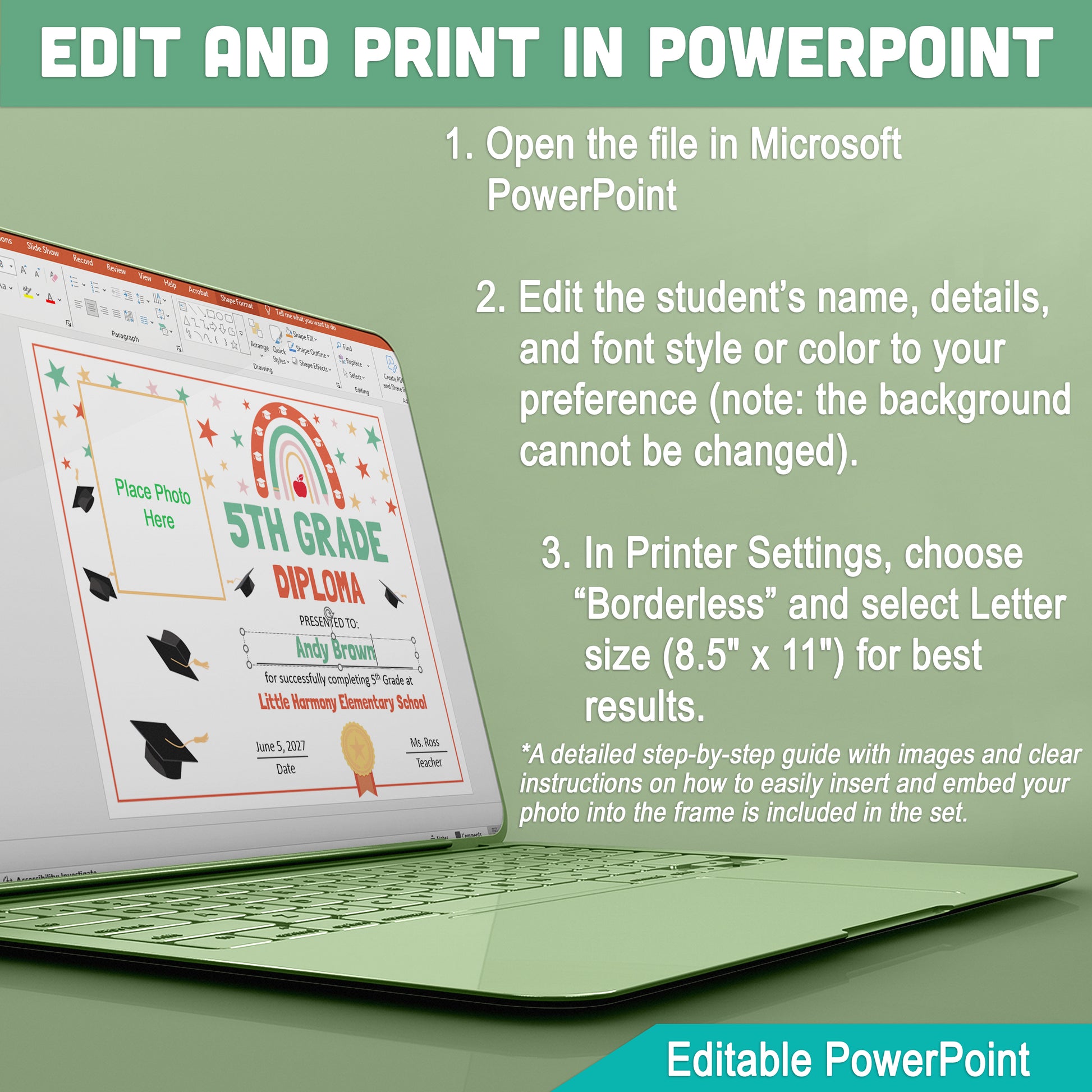 Editable 5th Grade Graduation Diploma & Certificate Set, Retro Rainbow Stars Theme, Printable Awards, Photo or No-Photo, PDF, PowerPoint