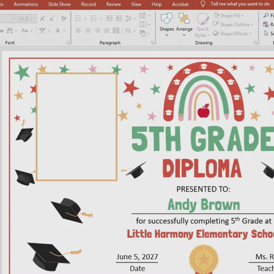 This set includes Two Graduation Award Styles, Photo and No-Photo Versions Included, so you can personalize each certificate your way. You can also Choose the Award Title You Prefer, Diploma or Certificate, giving you flexibility for your event. All templates are fully editable in PDF and PowerPoint, except for the background image which is not editable. The set includes a detailed, step-by-step guide with images and clear instructions to help you easily insert and perfectly embed your photo into the frame using PowerPoint.