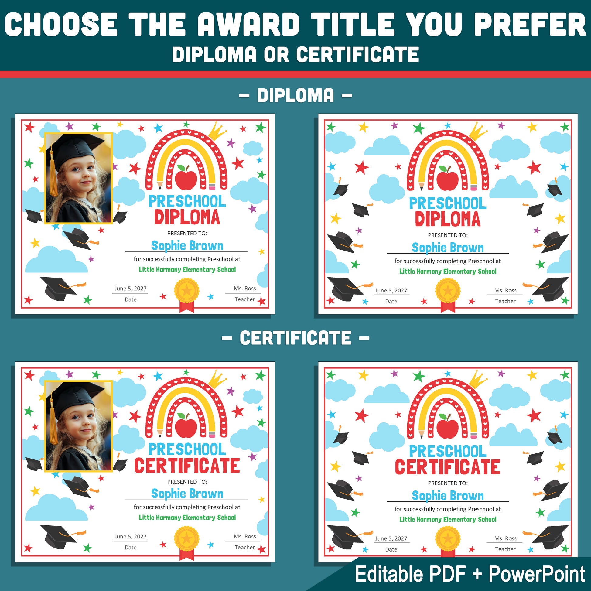 Editable Awards and Certificates, Graduation Set for Preschool & Beyond, Any Grade Diploma or Certificate Template, With and Without Photo, PDF PowerPoint