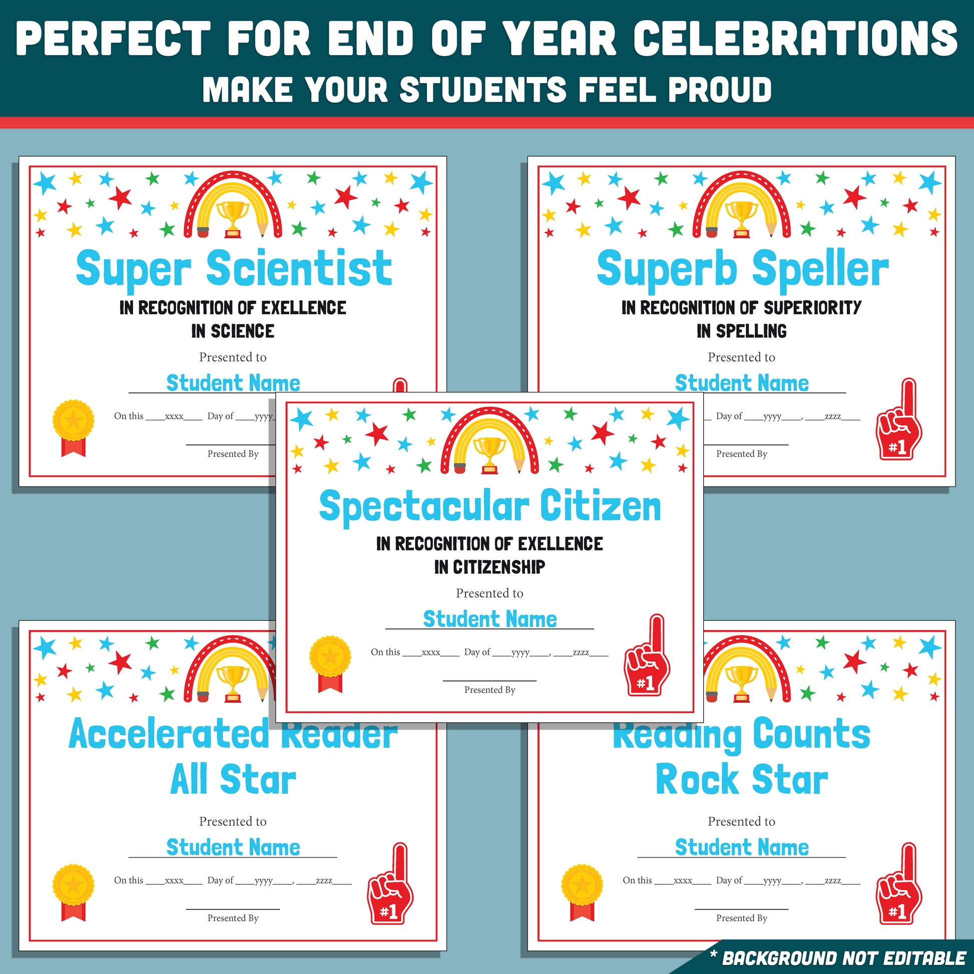 Editable Classroom Awards, Printable Certificates Bundle, 26 Student Recognition Designs, Classroom Celebration Pack, Teacher Friendly Resource