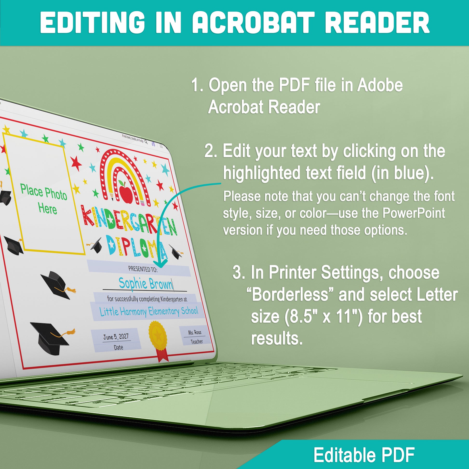 Editable Kindergarten Graduation Diploma & Certificate Set, Photo and No-Photo Awards, Edit in PDF PowerPoint or Canva, Rainbow Stars Graduation