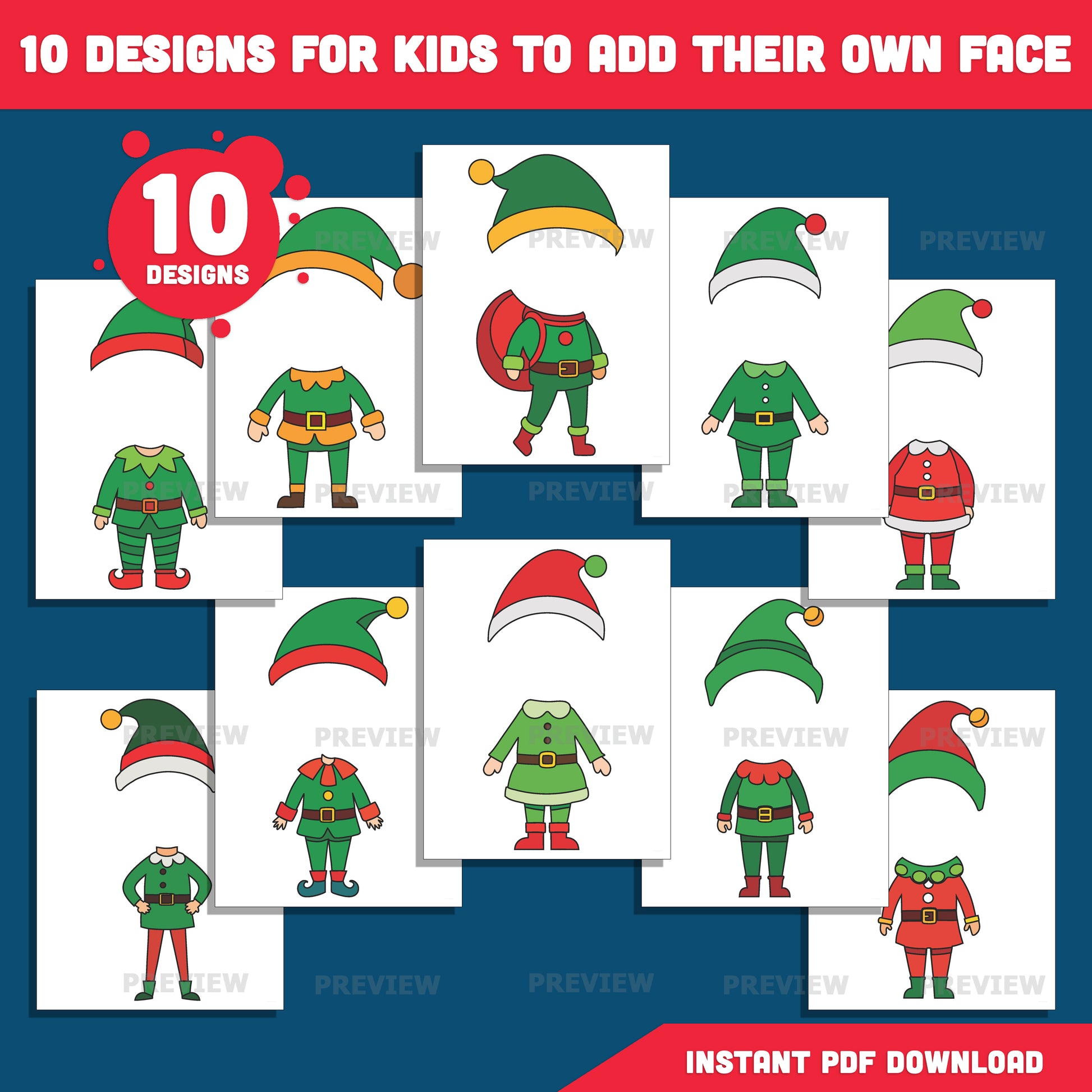 Parents and teachers can use these winter body templates for school craft stations, morning warm-up activities, party tables, or quiet-time artistic projects at home. Kids love seeing themselves become a friendly elf character, making the experience engaging and fun while encouraging creativity.