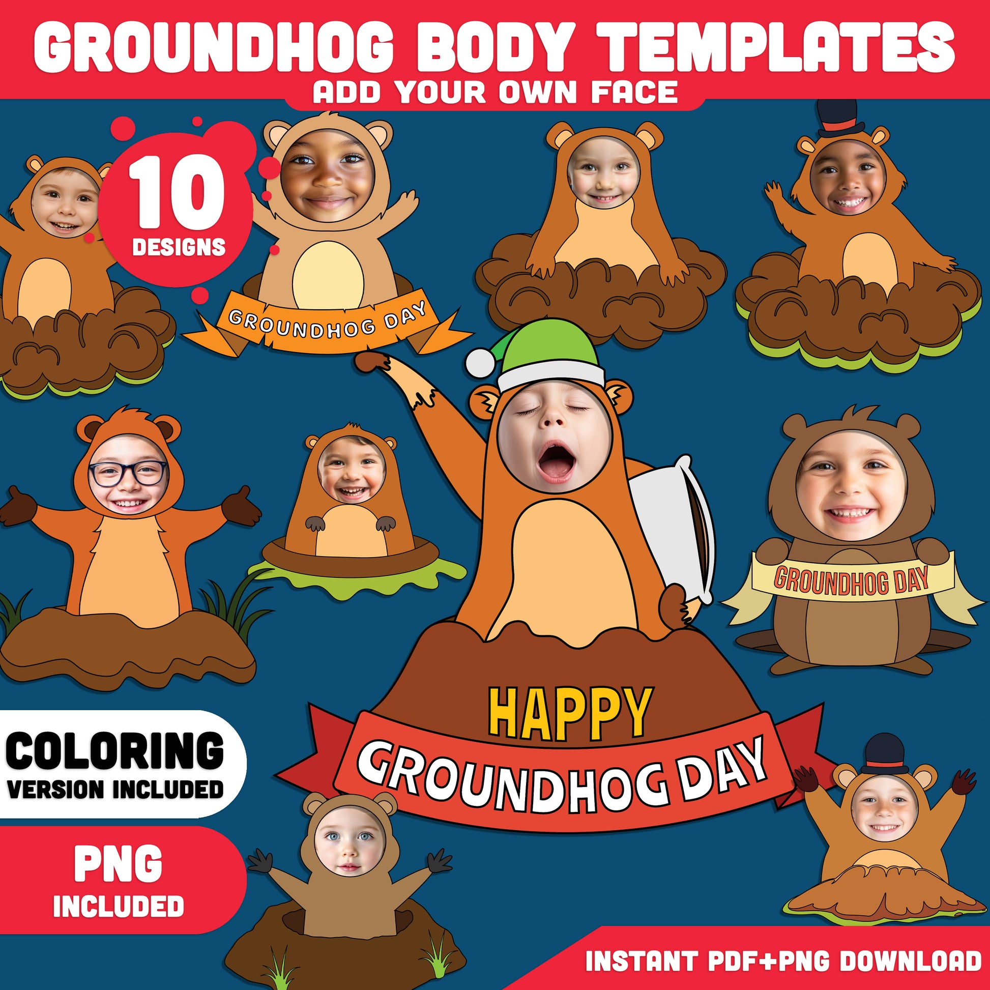 Groundhog Body Templates – Groundhog Day Craft Add Your Own Face, Photo Cut and Paste Activity with Coloring Version, PDF & PNG