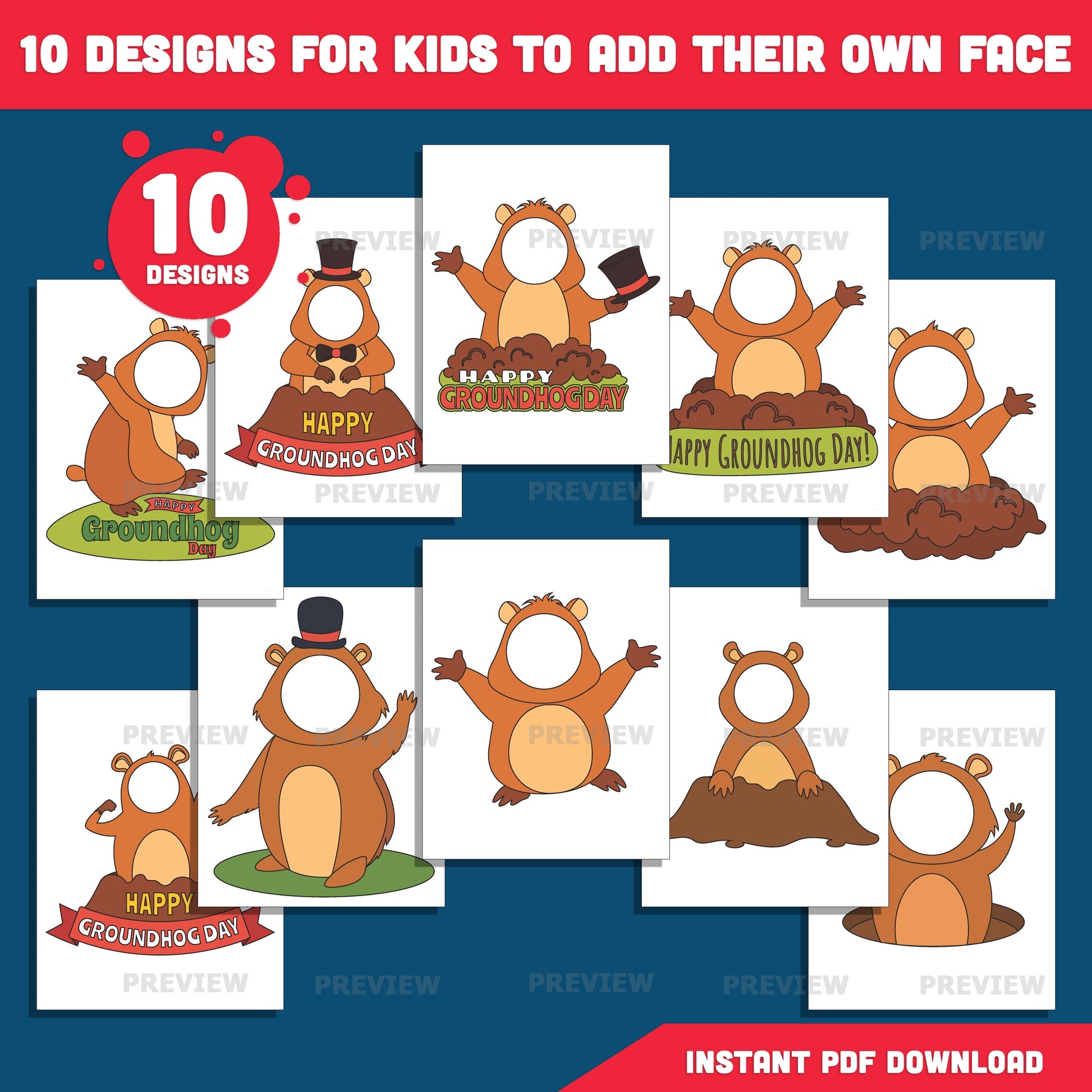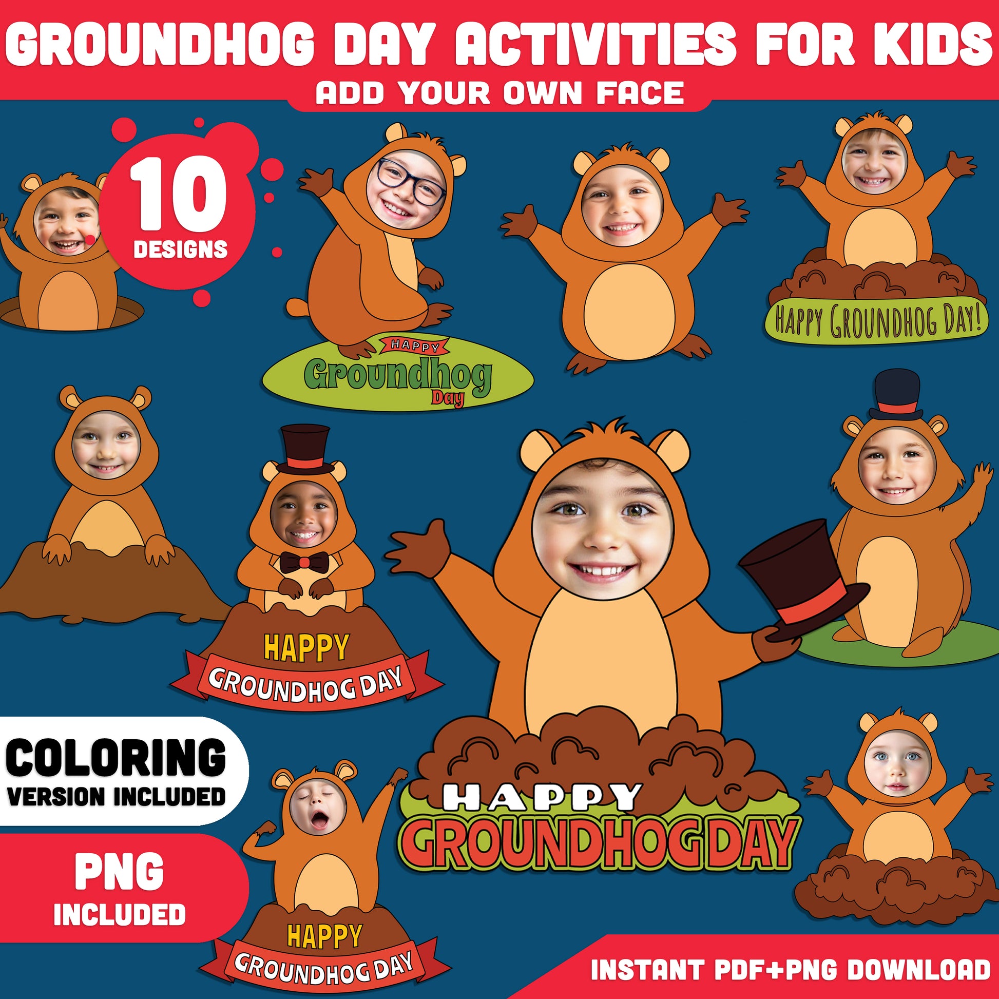 Groundhog Day Add Your Own Face Crafts – Add Your Photo Groundhog Templates, Classroom and Home Activity, Coloring Version Included
