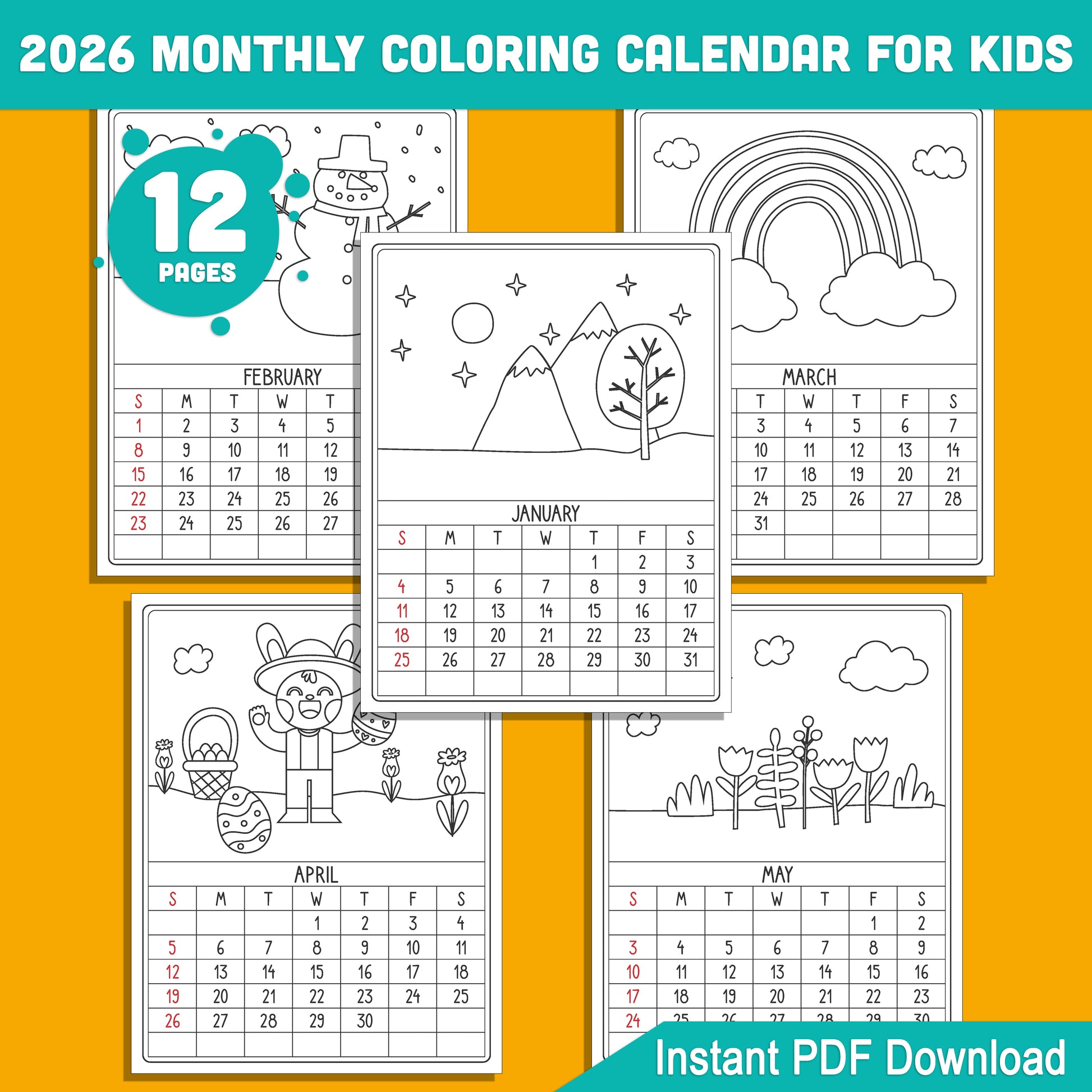 Interactive 2026 Calendar Coloring Activity: Learn and Color Each Month, Perfect for Kids’ Education and Fun, Instant PDF Download