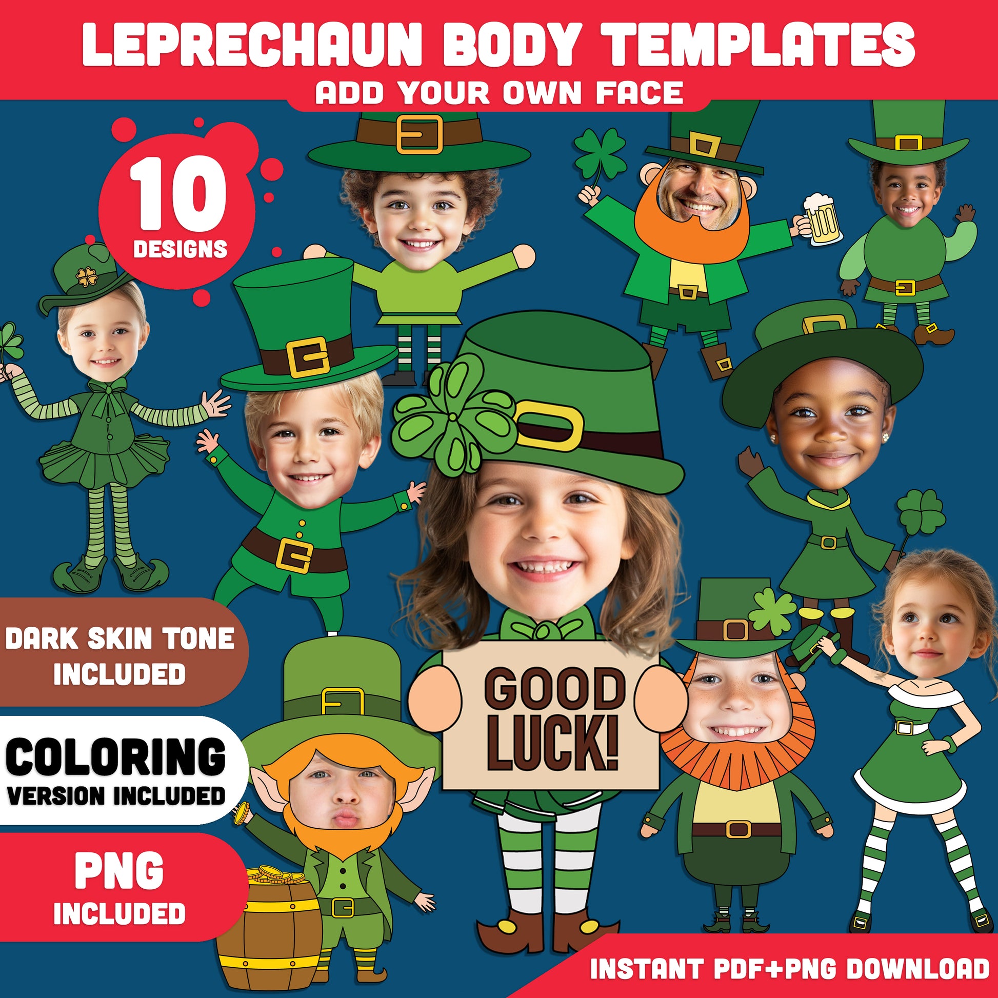 Bring a festive touch to March learning with Leprechaun Body Templates, a playful printable that lets children become part of the fun. Designed for parents and school classroom activities, this resource fits naturally into homeschool days, party stations, group projects, and themed bulletin boards. The set includes 10 Unique Designs (Light + Dark Skin Tone, PDF + PNG with Transparent Background), Coloring Version Included, all delivered in High Resolution 300 DPI.