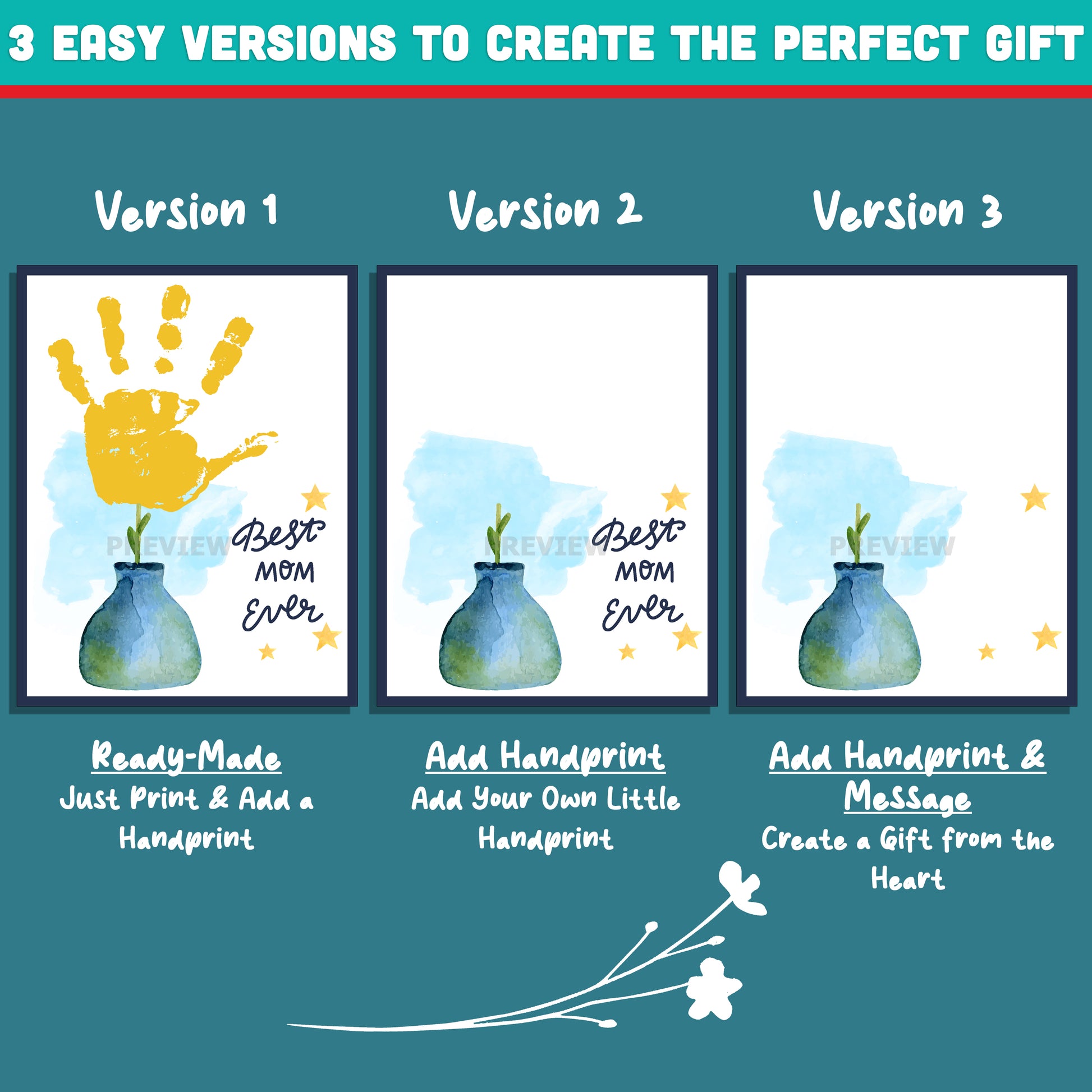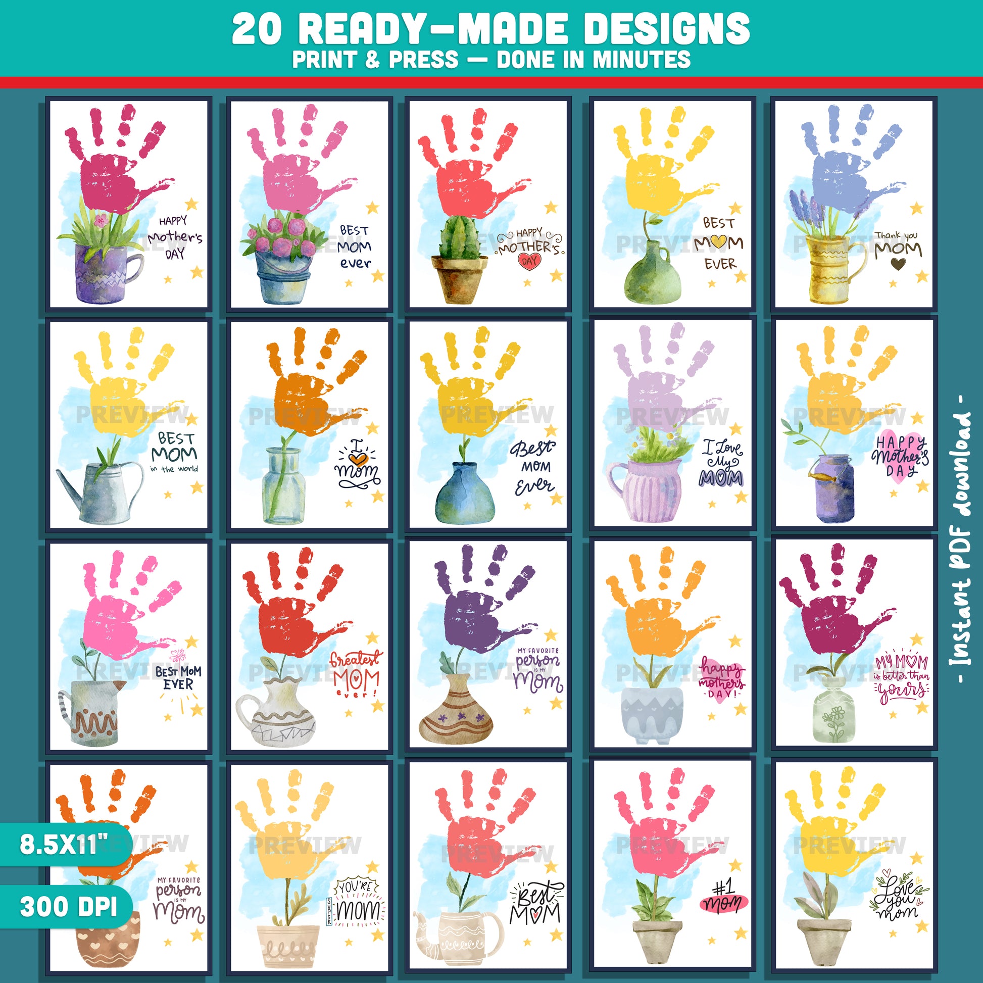 Mother's Day Handprint Flower Craft – Mother’s Day Handprint Craft for Kids, Bloom Handprint Art with Flower Pot and Vase, Keepsake Gift from Kids for Mom Grandma
