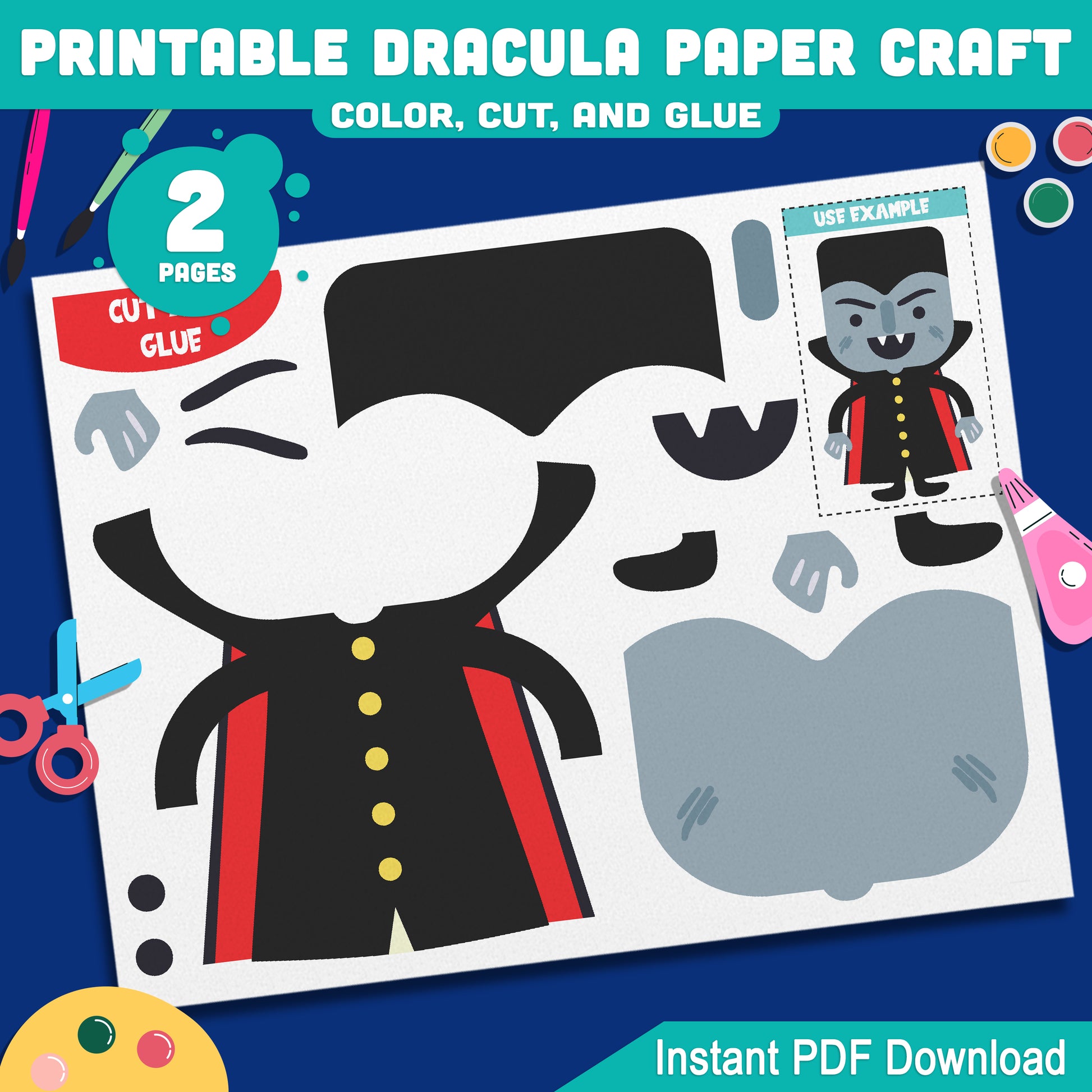 Printable Dracula Paper Craft for Preschool, Pre-K, Kindergarten – Fun Color, Cut and Glue Activity, Pre-Colored & Black and White, Halloween Project