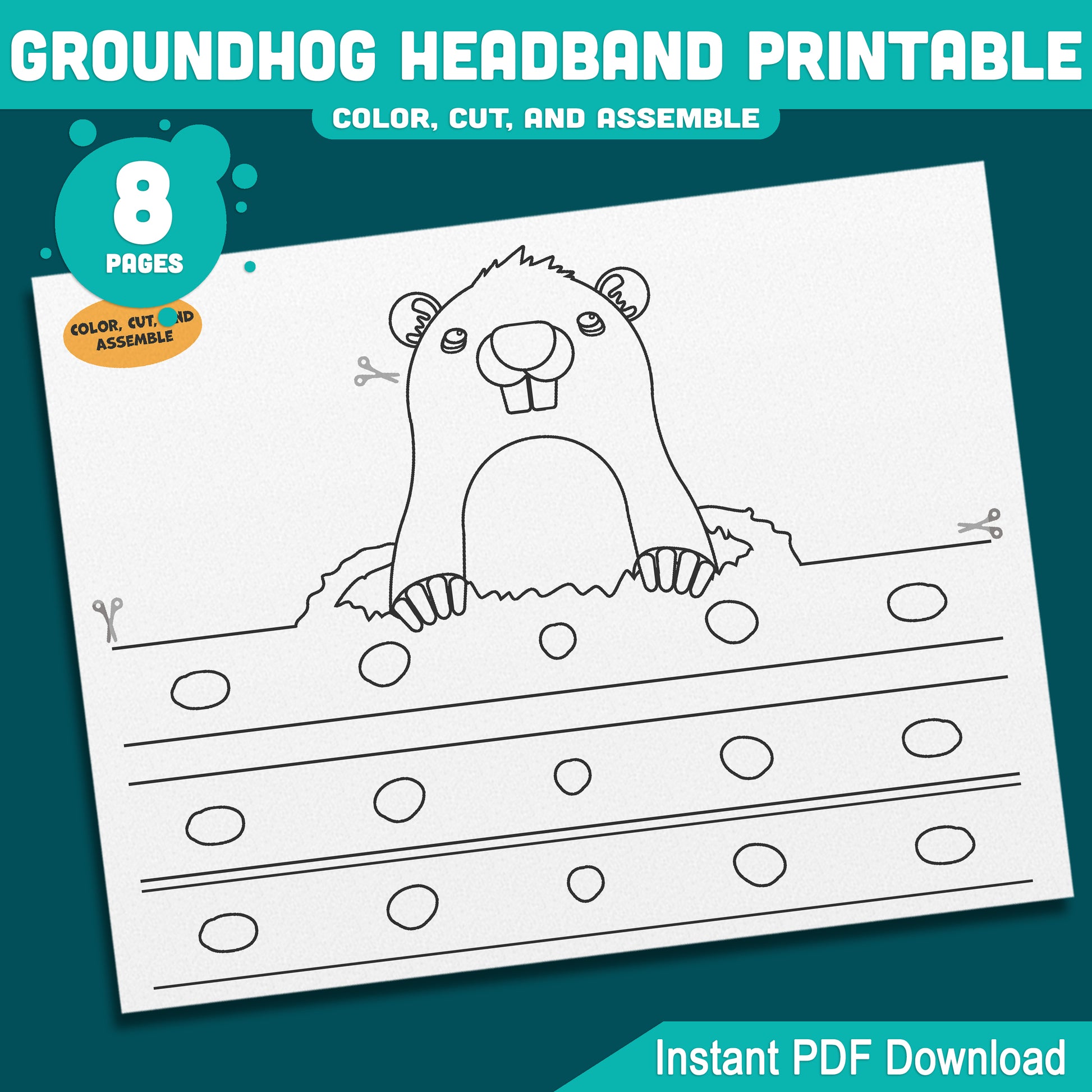 Printable Groundhog Day Headband & Crown Crafts for Kids, Fun Paper Hat Craft, Color Cut and Wear Crown Activity, Pre-color + Black & White