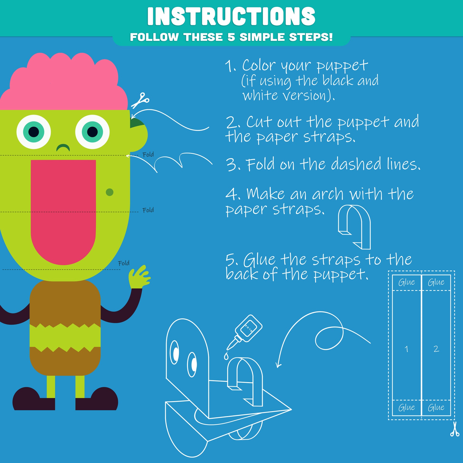 2. Cut out the puppet and the paper straps.