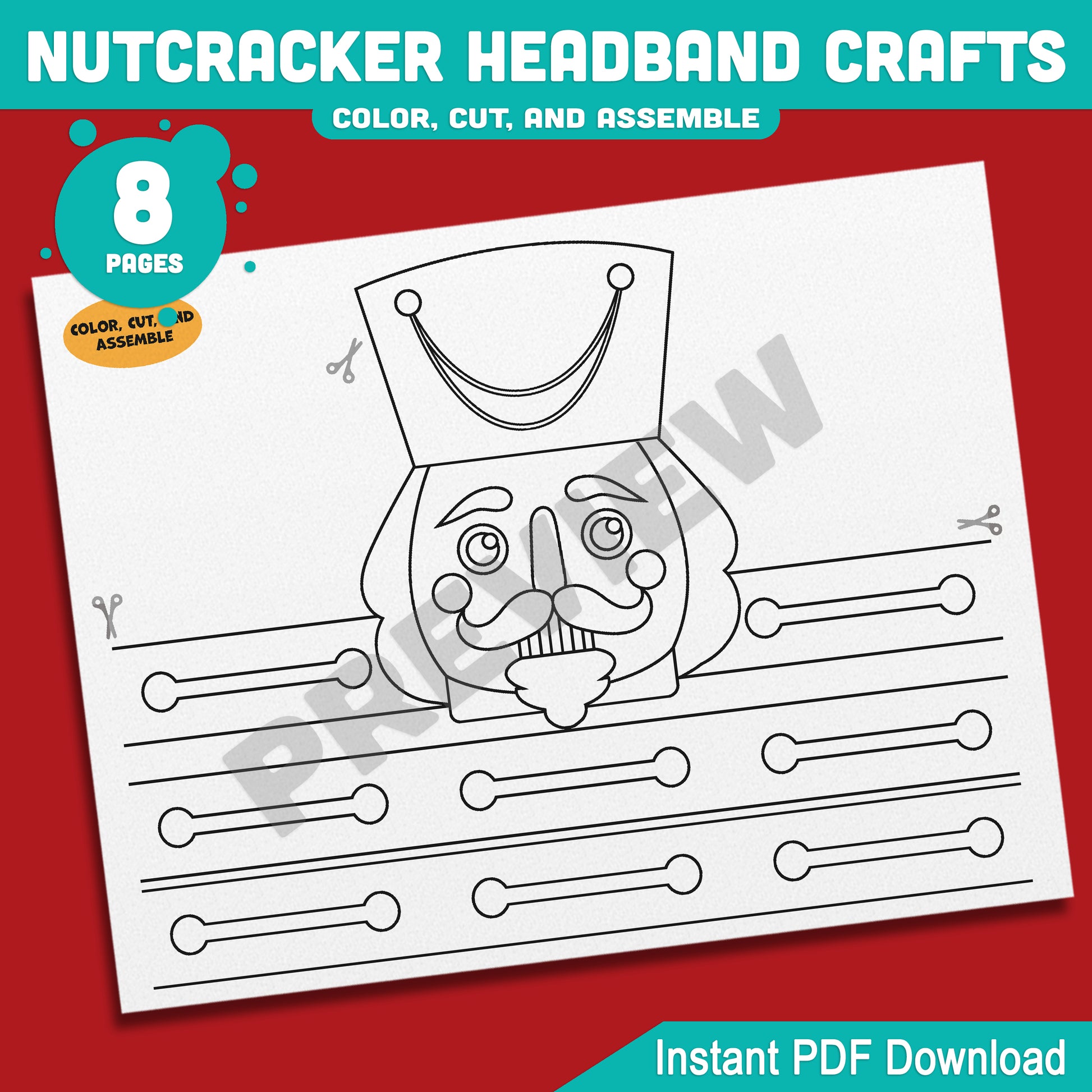 Printable Nutcracker Headband Crafts, Christmas Hat and Paper Crown Activity, Cut, Color & Assemble, Holiday Craft for Kids, 4 Fun Designs, Pre-color + Black & White PDF