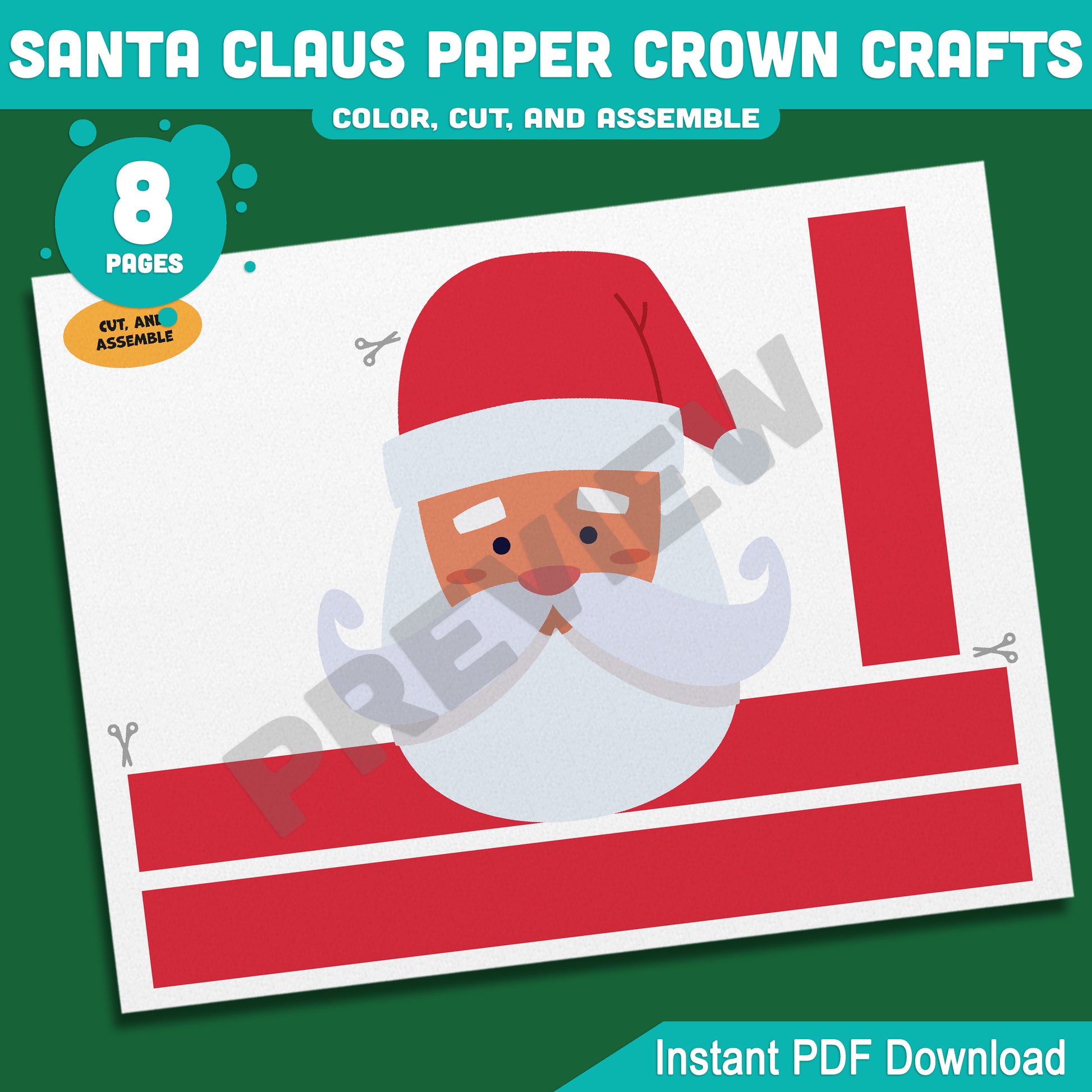 Printable Santa Claus Paper Crown Crafts, Christmas Coloring Headband and Hat Activity, Cut, Color & Wear, Perfect for Winter Party Fun, 4 Designs, Pre-color + Black & White, Instant PDF Download